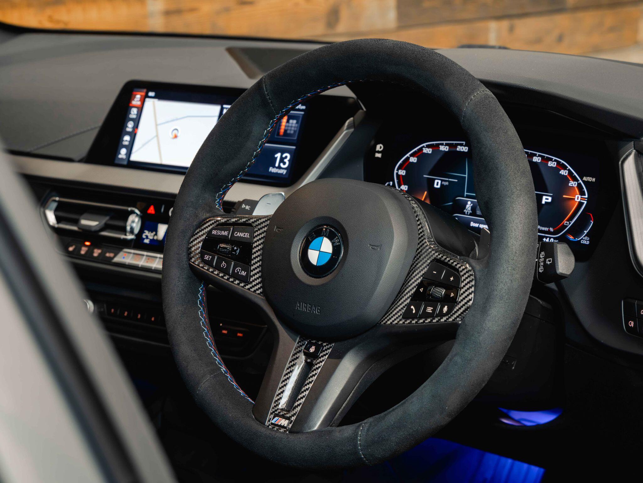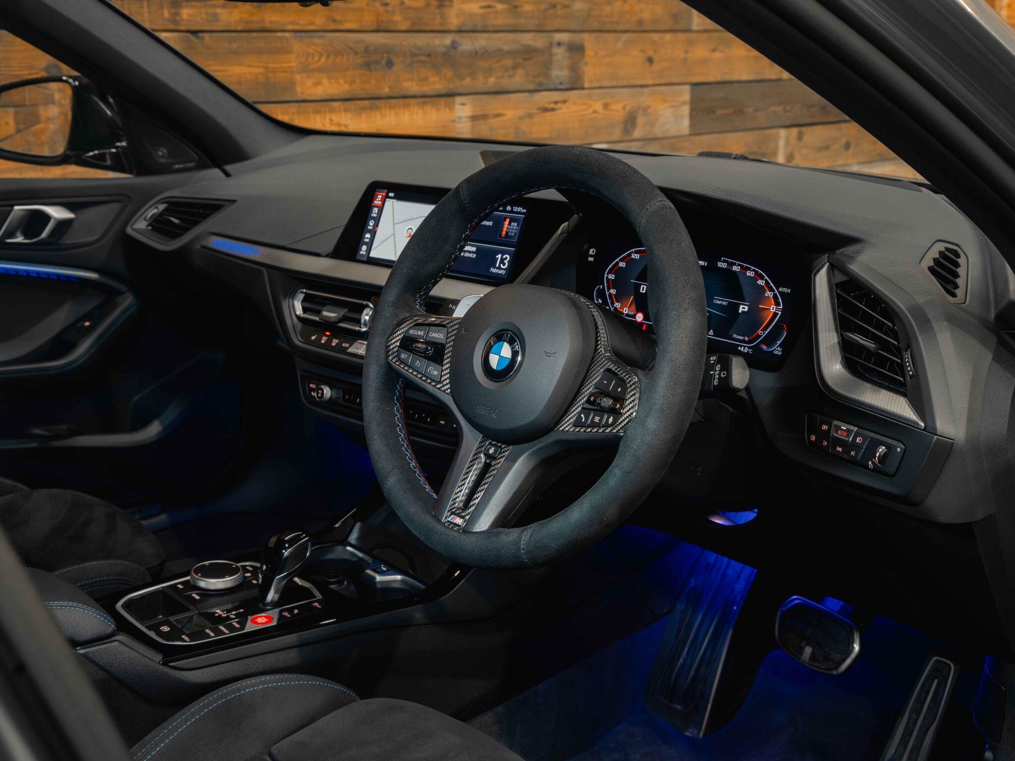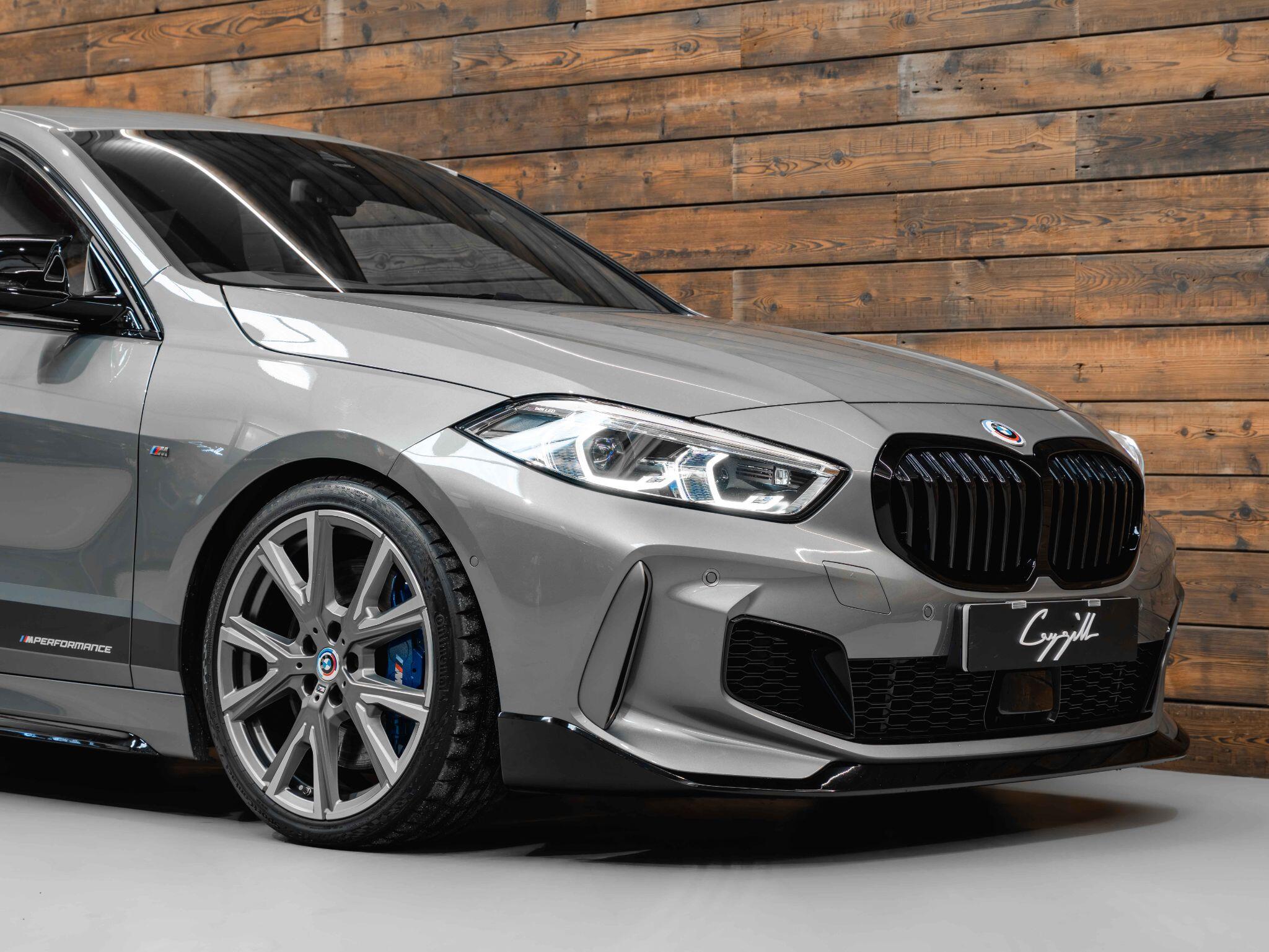 Factory Spec consists of - M Performance Alcantara Heated Steering Wheel, Heated Seats, Head up Display, Harmon Kardon, Enhanced Bluetooth and Wireless Charging, Apple Car Play, M135i Pro Pack, Tech Pack, M Start Button, Adaptive LED Headlights, Park Assist, Sun Protection Glass, 19" Alloy Wheels - M V - Spoke Style 557M Bi-Colour Wheels, Trigon Cloth and Anthracite Alcantara Interior.