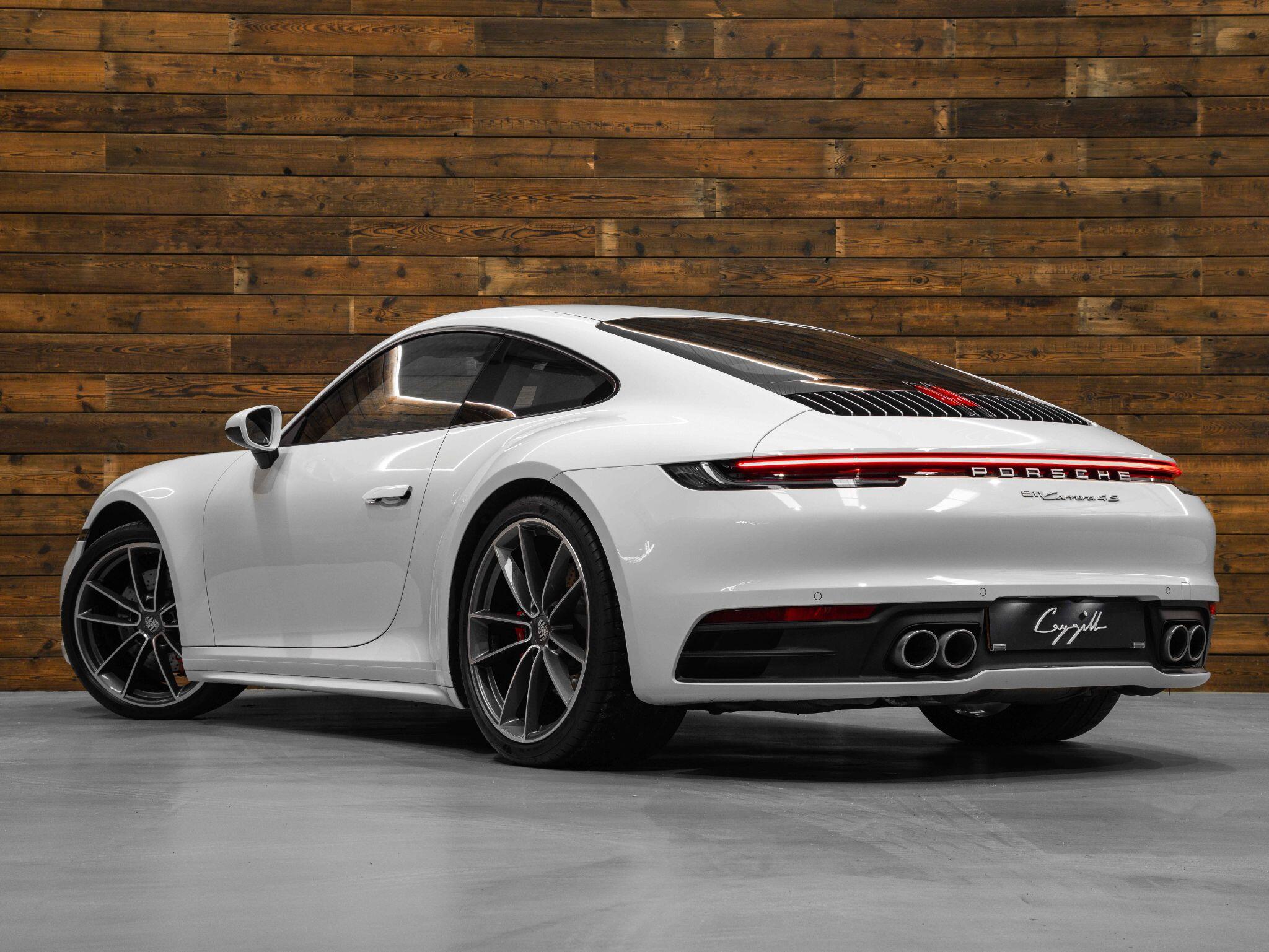Immaculate Porsche 911 3.0T 992 Carrera 4S Coupe - Finished in Solid White - Comprehensive Factory Spec consisting of - Black Leather with Crayon Stitching, Sport Design Side Skirts, Electric Folding Mirrors, 21" Carerra Classic Wheels, LED Main Headlights including Porsche Dynamic Light System Plus, Automatic Dimming interior and exterior mirrors with integrated rain sensor, Park Assist including reverse camera, Sports Seats Electric 4 Way, Porsche Crest on Head Rests, Brushed Aluminium interior Package, Illuminated door sill guards in brushed aluminium darksilver, BOSE Surround System.