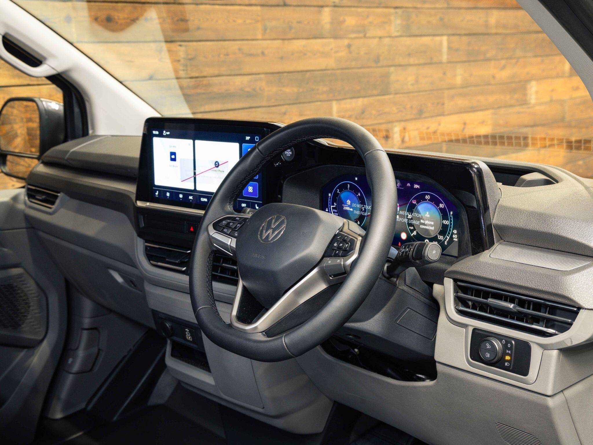 The all new Transporter T7 - 150PS Auto - 4MOTION - Graphite Dust Metallic, 20" Black Leighton Wheels, Aero Styling Kit, Lowered Suspension, Single Front Passenger Seat, Lights And Vision Pack, Glazed Heated Tailgate, Heated Steering Wheel, LED Rear Lights with Exclusive Signature, Twin Sliding Doors, Parking Pack Premium Plus.